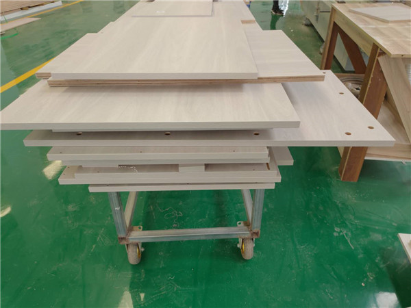開始制作啦!專業(yè)設(shè)備裁板,沒有爆邊。板材使用平安樹實木多層板E0級制作,有高級的藍光防偽標識哦,
