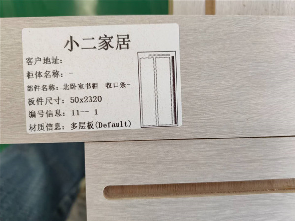 我家不管大小板都是四面封邊哦!每塊板上都貼有小標簽,方便后期安裝師傅安裝。