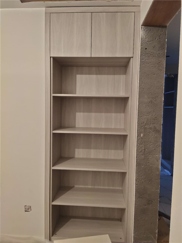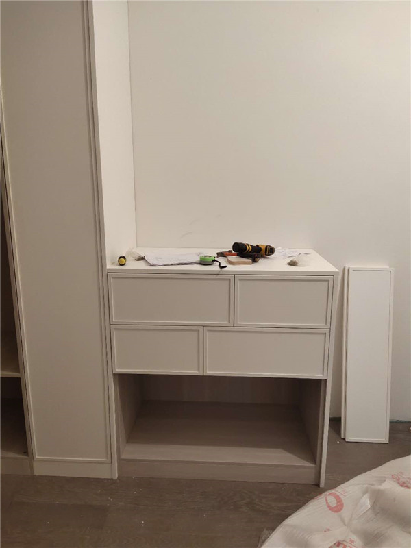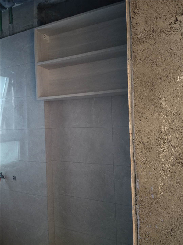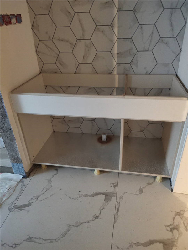 我們的柜體靠墻部分都是用的插槽的背板,背板離墻面距離1.2公分,防止后期使用時間長柜體發(fā)霉。