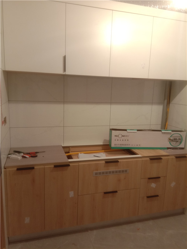 柜子安裝好后進入臺面測量環節,臺面量完后一個星期內送貨并安裝。