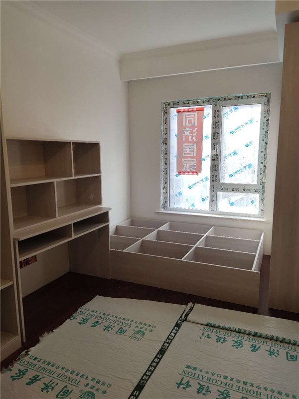 接著下面可能安裝臺面了。柜子多多,儲存多多,榻榻米房間也是做滿了柜子,書柜書桌衣柜統(tǒng)統(tǒng)都有,