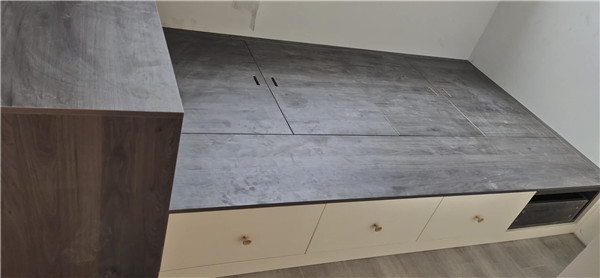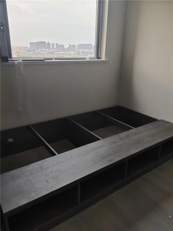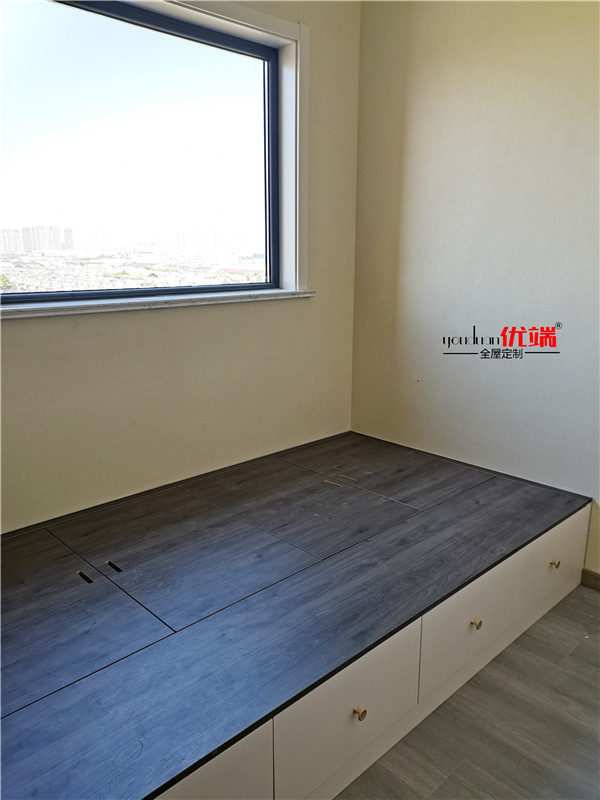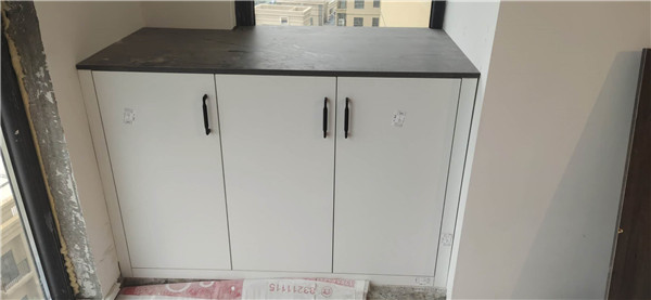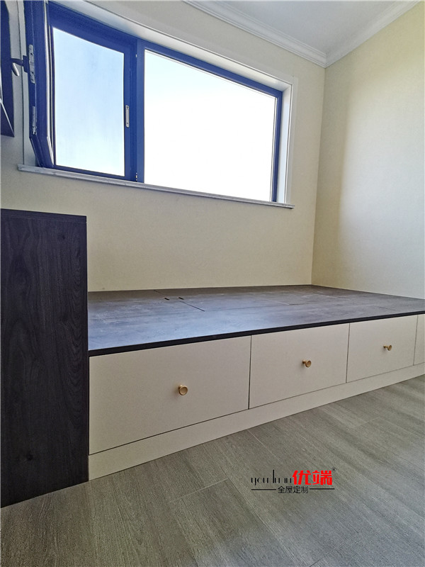 柜體的整體面貌出來了,業主家柜子可以說是超級多,后期收納足足的了。深色柜體時尚大氣、淺色柜體清爽溫馨,還有個大大的飄窗柜后面休息可以躺上面聽聽音樂喝喝茶,悠哉悠哉。