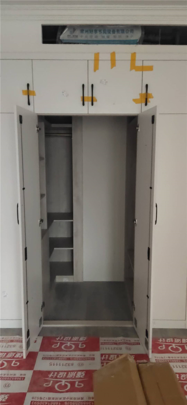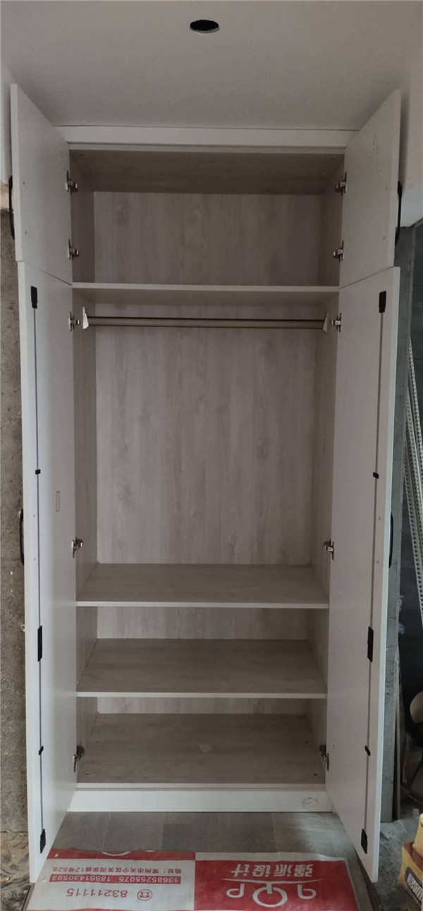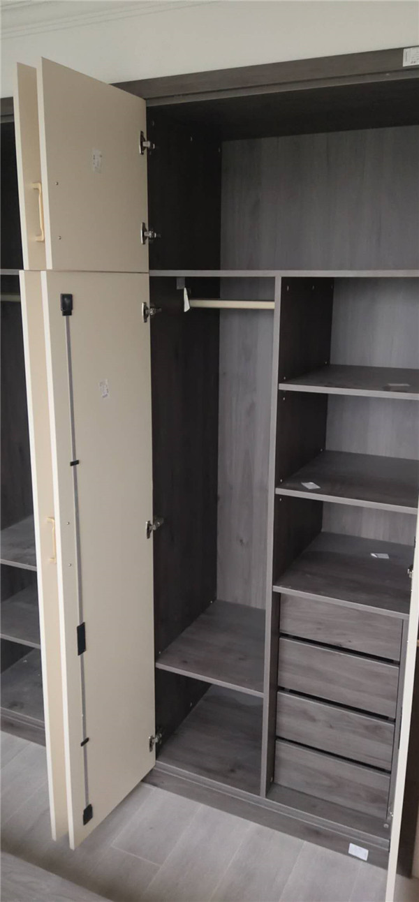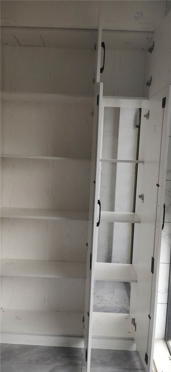 柜子全部安裝完畢啦!深色柜體白色門板在配上簡約的小拉手,整體效果簡約而不簡單。主臥看似是個普通的衣柜,其實是一個步入室的衣帽間,哈哈,是不是很意外,我也很意外,大大的衣帽間收納足足的了。