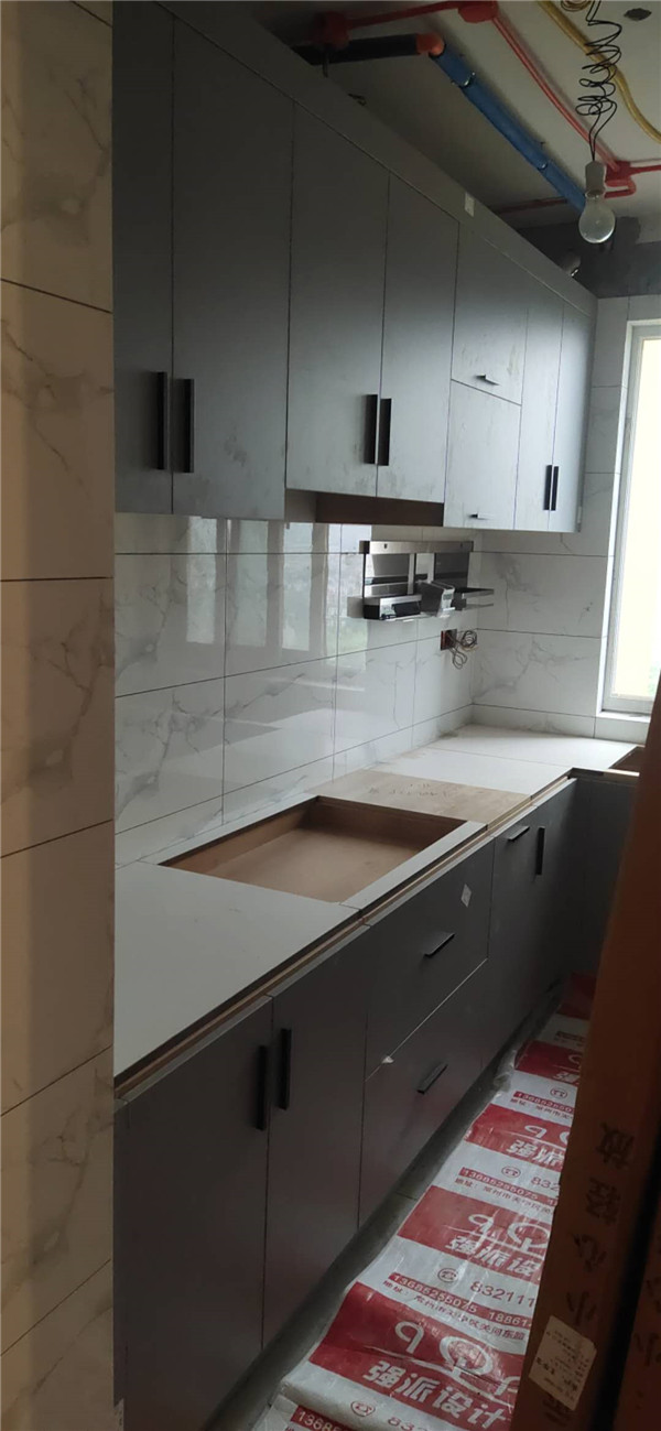 臺面安裝完畢,廚房陽臺都采用的是臺下盆后期方便打理。
