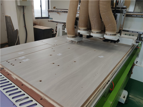 開始制作啦!專業設備裁板,邊口都是直的,沒有爆邊的情況,這樣后面封出來的邊更圓滑,全自動機器開料尺寸更精準。插槽背板離墻面1.7公分,